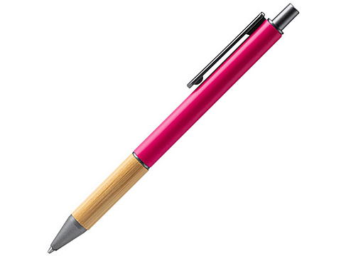 Металлическая шариковая ручка с матовым покрытием, бамбуковой вставкой и деталями темного цвета.