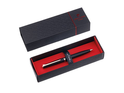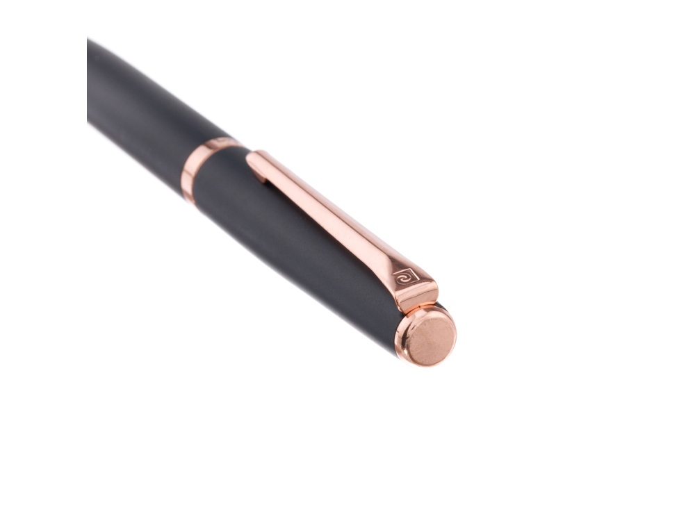 Шариковая ручка Pierre Cardin GAMME • Корпус - латунь. Цвет - черный; • Отделка - матовая; • Детали дизайна - цвета розового золота; • Упаковка - картонная коробочка черного цвета с картонным ложементом красного цвета; • Размер упаковки -175 х 55 х 35 мм, вес 35 гр Комплектация: • Металлический шариковый стержень с логотипом Pierre Cardin на корпусе с чернилами синего цвета; • Инструкция по использованию ручки. Экономичные ручки Pierre Cardin серии GAMME - прекрасное начало для больших дел! Большое всегда начинается с малого! Широкая гамма отделок и элементов дизайна, разнообразие форм и размеров, неповторимое сочетание стилей все это создает новый уровень элегантности по доступной цене.