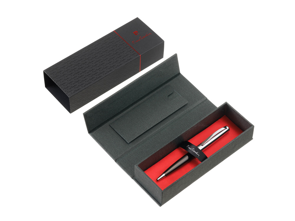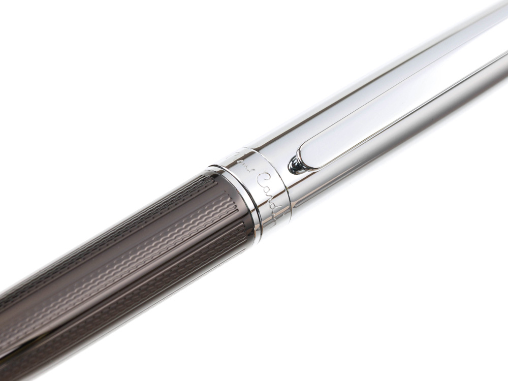 Шариковая ручка Pierre Cardin LEO PC0650BP • Корпус - латунь. Цвет - серебристый и оружейная сталь; • Отделка - глянцевая; • Детали дизайна - лазерная гравировка; • Упаковка - жесткая картонная коробочка с мягким тканевым ложементом с фирменным дизайном + фирменная защитная муфта. • Размер упаковки - 180 х 68 х 40 мм, вес 133 гр Комплектация: • Металлический шариковый стержень с логотипом Pierre Cardin на корпусе, с чернилами синего цвета для шариковой ручки; • Подарочная открытка; • Инструкция по использованию ручки. Новая серия пишущих инструментов Pierre Cardin LEO. Глянцевый серебристый колпачок добавляет изысканности, а нижняя часть черного цвета – уверенности. Незаурядный геометрический рисунок выгравирован на нижней части корпуса. Удобная форма ручки обеспечивает комфортное письмо, а качественные чернила делают каждое слово четким и выразительным. Для данной ручки подходят стержни: PC-310Р-01 (черный), PC-310Р-02 (синий)