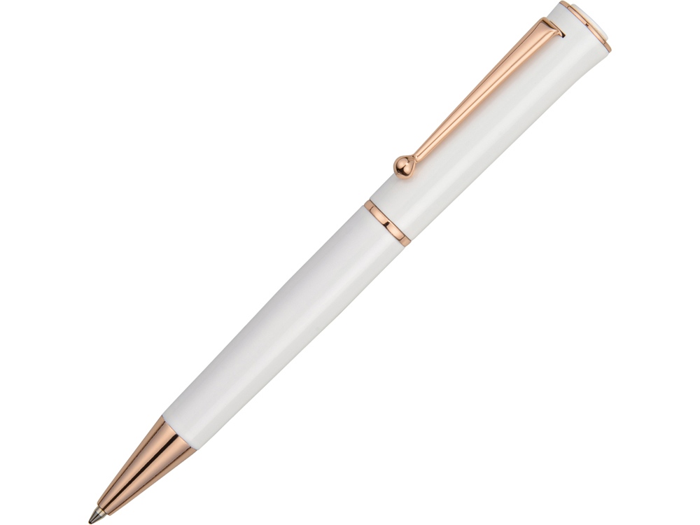 Шариковая ручка в металлическом корпусе обладает интересным, притягательным дизайном. Сочетание белоснежного и нежно-розового цветов придется по вкусу стильным деловым леди.