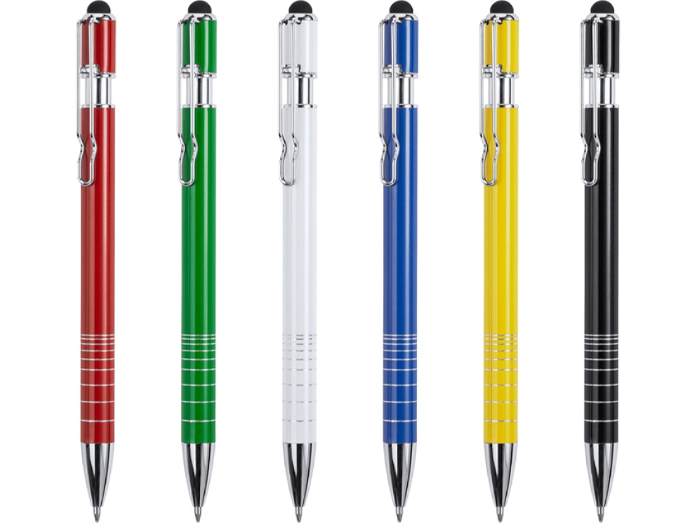 Металлическая шариковая ручка. Стилус и дизайнерский зажим. Синие чернила