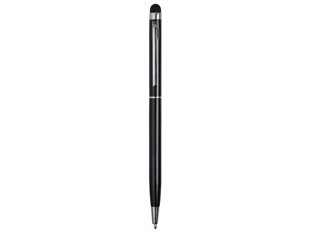 Тонкая металлическая шариковая ручка с поворотным механизмом и стилусом. Функциональный и стильный аксессуар станет отличным подарком.