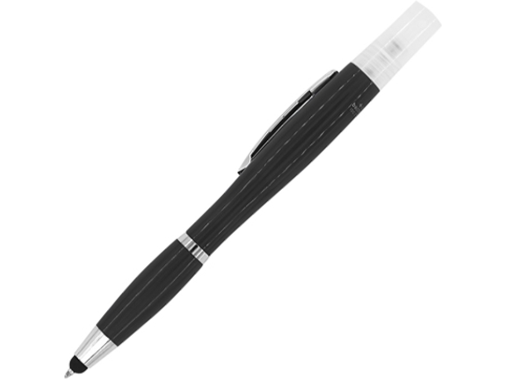 Многофункциональная антибактериальная дезинфицирующая ручка с перезаряжаемым распылителем и стилусом. Емкость 3 мл. (жидкость не включена). Синие чернила.