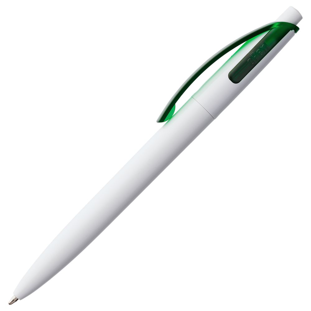 Ручка шариковая Bento, белая с зеленым купить оптом и в розницу с нанесением логотипа в Нижнем Новгороде