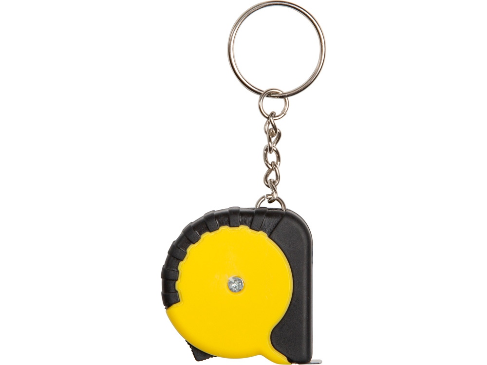 Рулетка длиной 1 м с возвратной пружиной и стопором со шкалой в сантиметрах и дюймах. Кнопка для фиксации ленты.