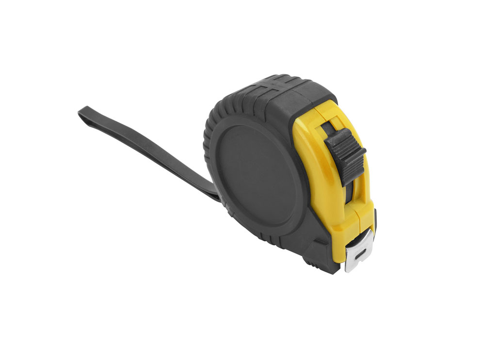 3-метровая рулетка с фиксирующим механизмом. Цветной прорезиненный, металлический зажим и ремешок для переноски.