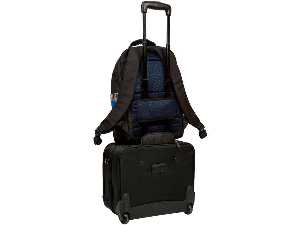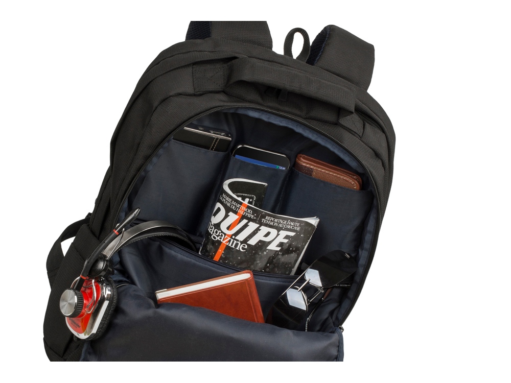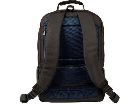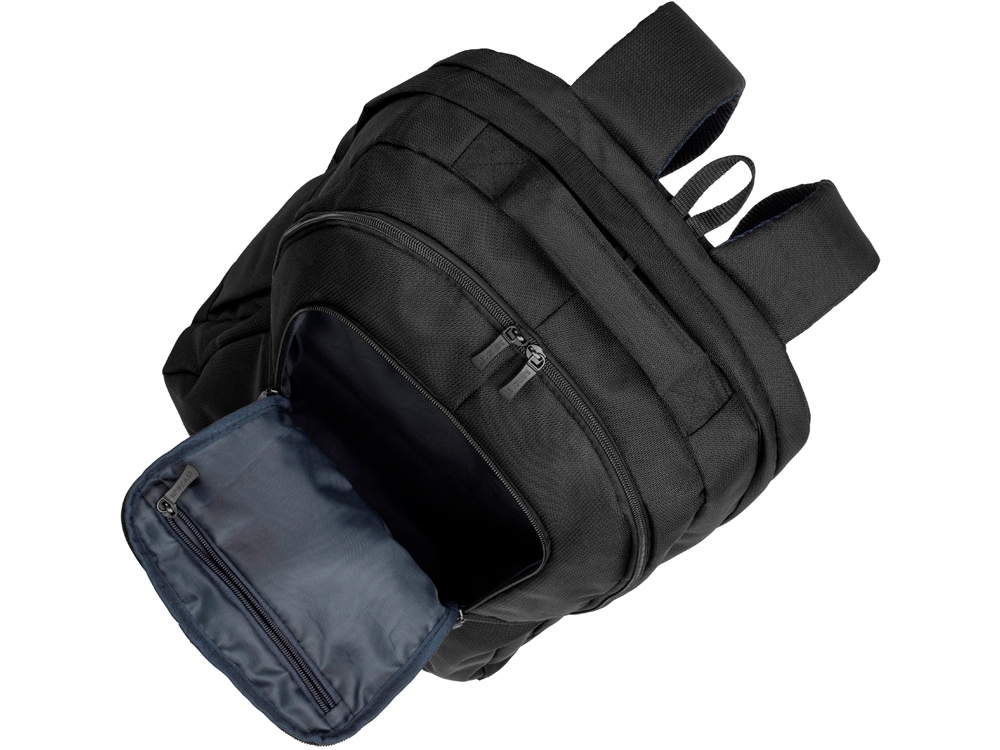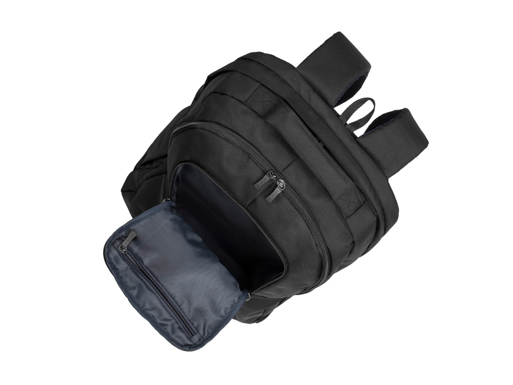 Рюкзак для ноутбука до 17''. • Многофункциональный рюкзак для профессионалов, идеально подходит для деловых поездок и туристических путешествий. • Изготовлен из плотного синтетического материала и имеет утолщенные стенки для лучшей защиты ноутбука от случайных ударов и царапин, а также от пыли и влаги. • Основное отделение для ноутбука с вертикальной загрузкой, имеет мягкие стенки и ремень для надежной фиксации ноутбука до 17. • Просторная секция на молнии для хранения книг и документов. • Дополнительное внутреннее отделение для планшета до 10.1. • Два внешних передних кармана на молнии. Один для хранения аксессуаров, зарядного устройства. Второй оборудован панелью-органайзером для хранения визитных карт, авторучек, смартфона. • Двойная застежка молния для удобного доступа к устройству. • Удобная мягкая ручка для переноски и наплечные ремни со смягчающими подкладками помогут чувствовать себя комфортно в самом долгом путешествии. • Сетчатый материал задней стенки рюкзака обеспечивает циркуляцию воздуха для максимального комфорта вашей спины. • На задней стенке имеется ремень крепления к багажной сумке и скрытый карман на молнии для паспорта, бумажника. • Два боковых кармана для ёмкостей с водой. • Специальная система крепления ремешков на липучке.