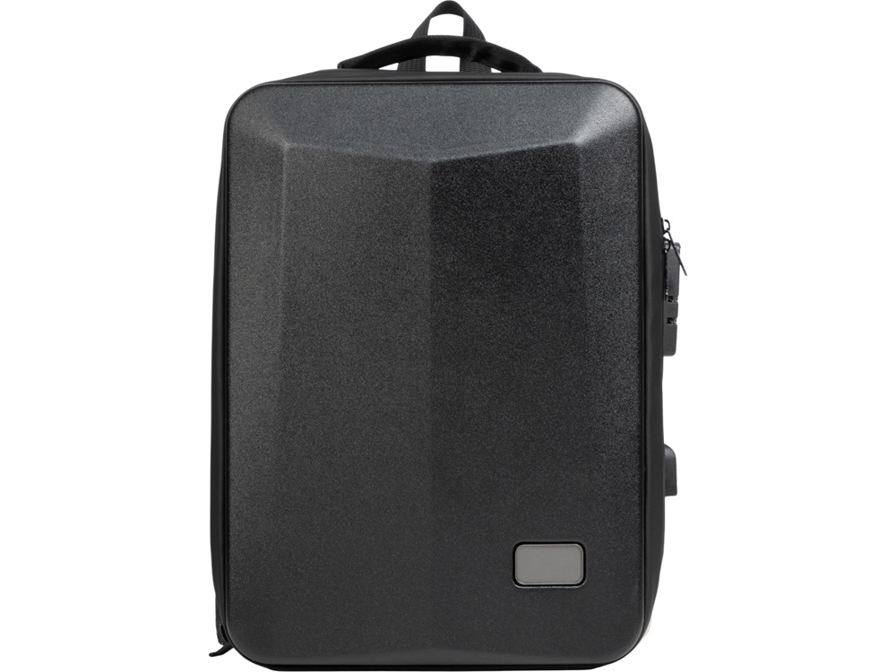 Водостойкий бизнес-рюкзак с пластиковой панелью спереди выглядит стильно и обеспечивает бережное хранение ваших личных вещей. Подходит для передвижений по городу и деловых поездок. 2 вместительных отделения позволяют разместить все необходимое: большое отделение для одежды с фиксирующими ремнями и органайзером, меньшее отделение с карманами для ноутбука и планшета и сетчатым органайзером. Несанкционированный доступ к содержимому вашего рюкзака будет затруднён благодаря кодовому замку и прочной пластиковой панели спереди. В рюкзаке предусмотрено много дополнительных удобств для использования: - интегрированный карман на молнии для бутылки сбоку - расстегнули, не снимая рюкзак, и бутылка окажется внутри корпуса - USB выход - светоотражающий элемент на лямке для большей безопасности - карман на лямке для карт, проездного или ключей - регулирующиеся по длине лямки - сетчатая спинка - ремень для крепления на ручку чемодана - нетканый мешок для хранения в комплекте - шильд для нанесения вашего логотипа в комплекте