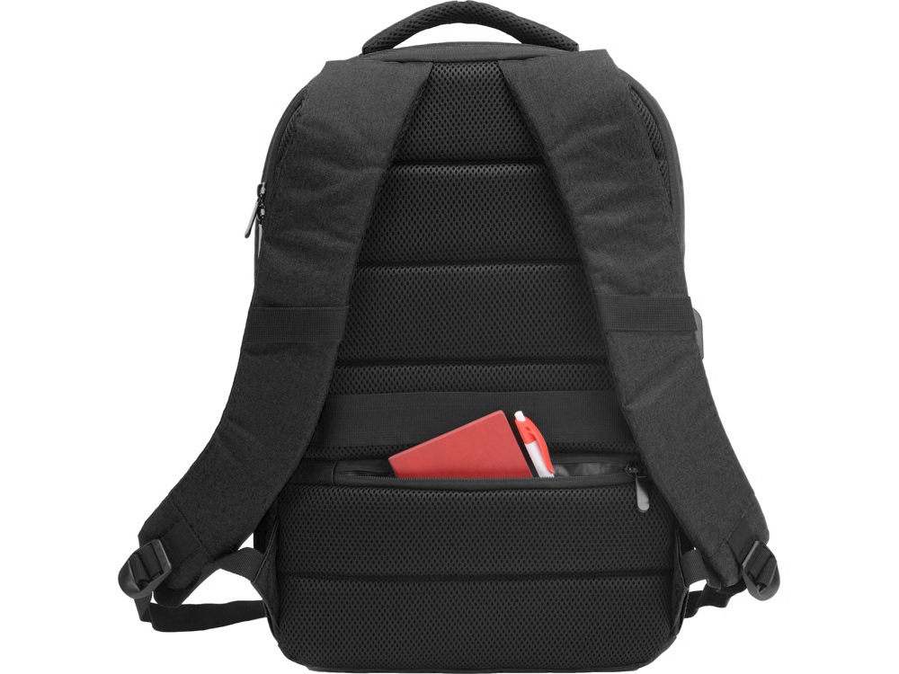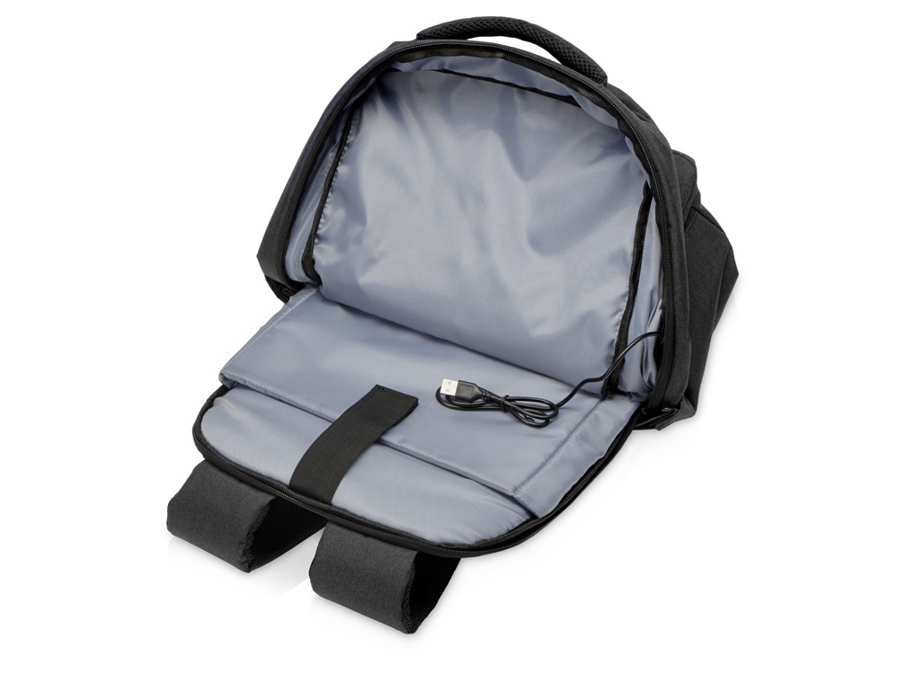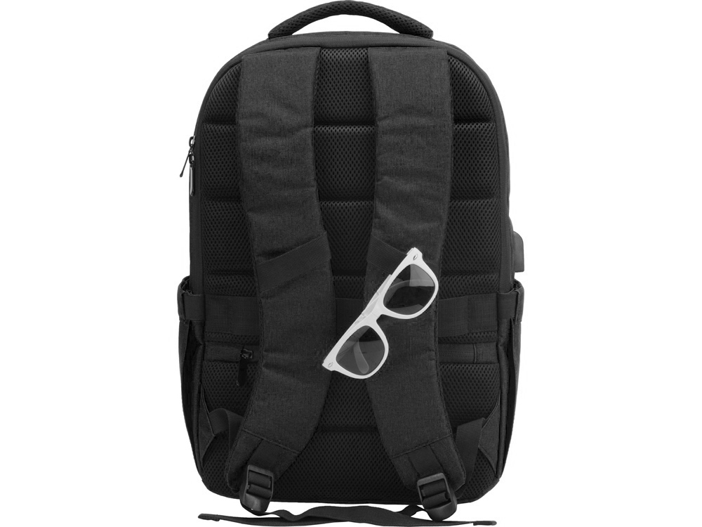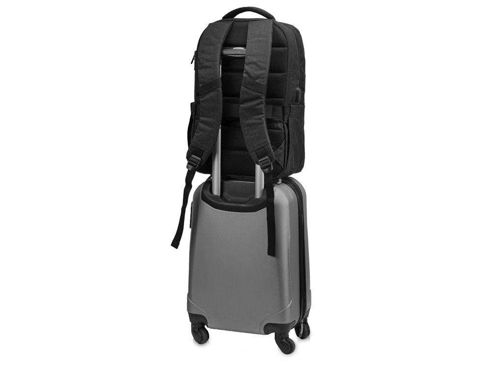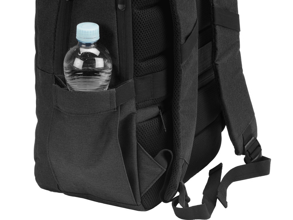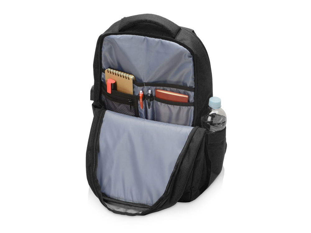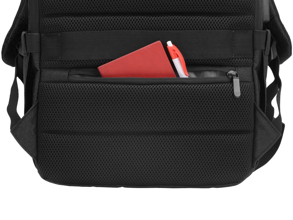 Удобный рюкзак для делового человека с двумя вместительными отделениями, в котором предусмотрено все до мелочей: - отделение с карманом для ноутбука 15.6' - отделение с органайзером - наружный карман на молнии -затрудненный несанкционированный доступ к отделению для ноутбука и планшета благодаря тому, что молния смещена к спинке - задний потайной карман с молнией на спинке - 2 боковых кармана на резинках, что позволяет им регулироваться по ширине под бутылки разного диаметра - ремень для крепления к чемодану - USB выход - дышащая сетчатая спинка - регулируемые по длине лямки