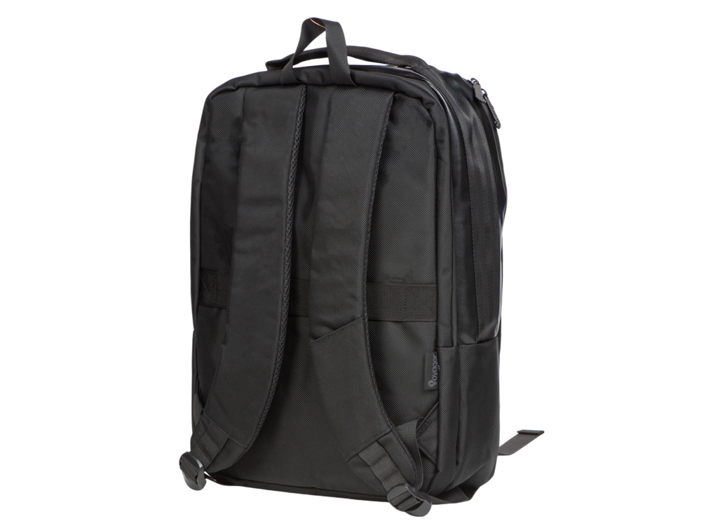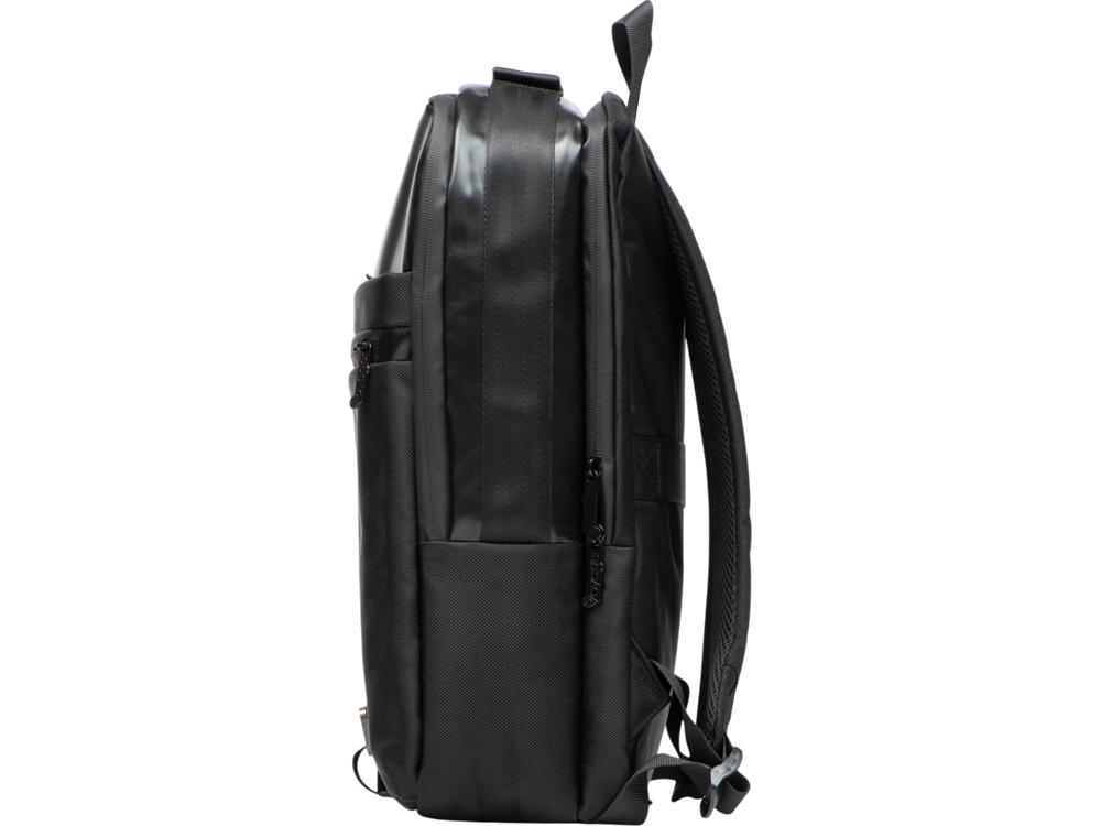 Удобный бизнес-рюкзак для передвижения по городу и деловых поездок состоит из отделения для ноутбука и планшета, большого отделения для одежды с фиксирующими ремнями, 2х наружных карманов на молнии спереди. Конструкция рюкзака продумана до мелочей: внутри большого отделения расположен органайзер для гаджетов и проводов, на спинке есть ремень для крепления на ручку чемодана и регулирующиеся по длине лямки, на лямке - карман для карт или ключей. Водостойкий материал и молнии. В комплекте мешок из спанбонда для хранения и металлический шильд под ваш логотип.