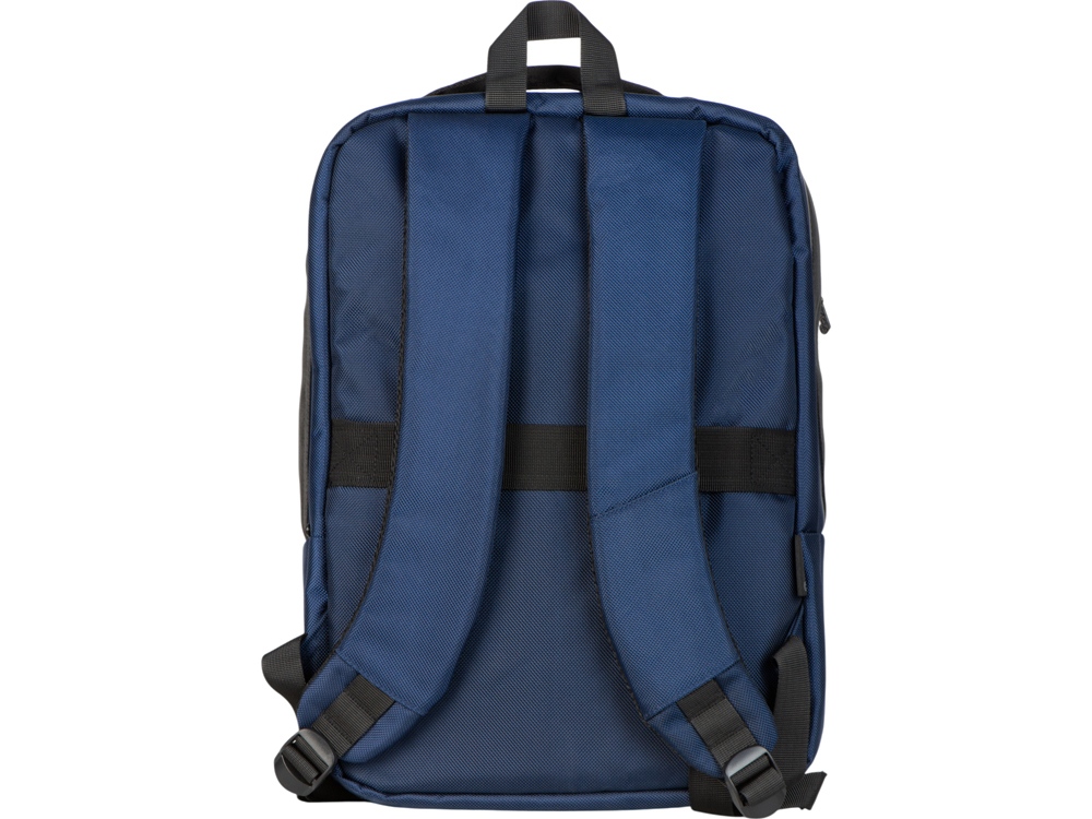 Удобный бизнес-рюкзак для передвижения по городу и деловых поездок состоит из отделения для ноутбука и планшета, большого отделения для одежды с фиксирующими ремнями, 2х наружных карманов на молнии спереди. Конструкция рюкзака продумана до мелочей: внутри большого отделения расположен органайзер для гаджетов и проводов, на спинке есть ремень для крепления на ручку чемодана и регулирующиеся по длине лямки, на лямке - карман для карт или ключей. Водостойкий материал и молнии. В комплекте мешок из спанбонда для хранения и металлический шильд под ваш логотип.