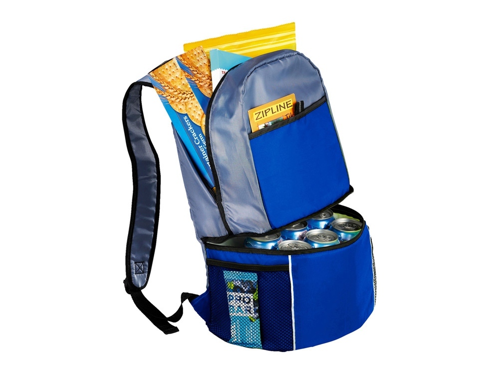 Рюкзак-холодильник состоит из 2х отделений верхнего и нижнего. Спереди карман на молнии. По бокам сетчатые карманы. Уникальное откидное дно с изоляцией PEVA. Идеально подходит для напитков и закусок. Регулируемые усиленные плечевые ремни с мягкими подкладками.