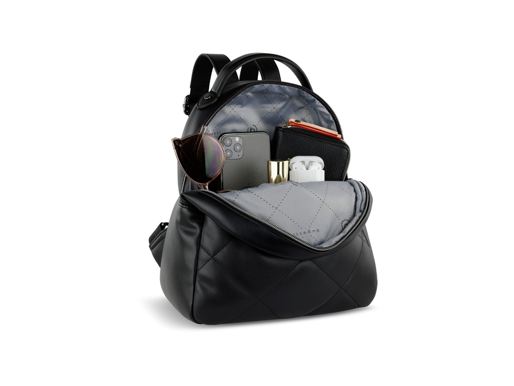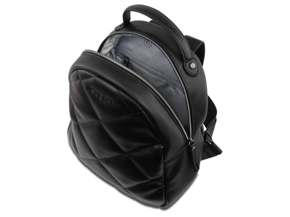 РЮКЗАК CARA Мы уверены, что любая сумка из нашей элегантной коллекции Cara гарантированно станет вашей любимицей на долгие годы. Мягкая отделка с ромбовидной формой, ручки, украшенные модными узлами, а также выполненный в цвете оружейной стали логотип Bugatti не оставят равнодушной ни одну модницу. Рюкзаки и сумки, представленные в чёрном, серо-голубом и белом цветах, гармонично сочетают в себе модный стиль со спортивным характером. С нашими изящными аксессуарами Cara вы точно не останетесь незамеченной! СВОЙСТВА Внутренняя организация: основное отделение на молнии с отсеком на молнии и 2 карманами Внешняя организация: верхняя ручка и 2 регулируемых плечевых ремня (до 90 см) Размер: 25,5 x 11 x 27,5 см Объём: 7 л Вес: 0,49 кг Материал: полиуретан