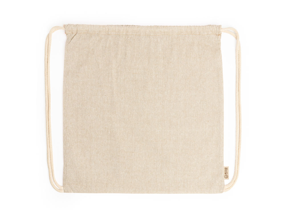 Рюкзак-мешок из переработанного хлопка плотностью 120 г/м² с меланжевой отделкой и шнурками натурального цвета. Доступен в различных цветах.