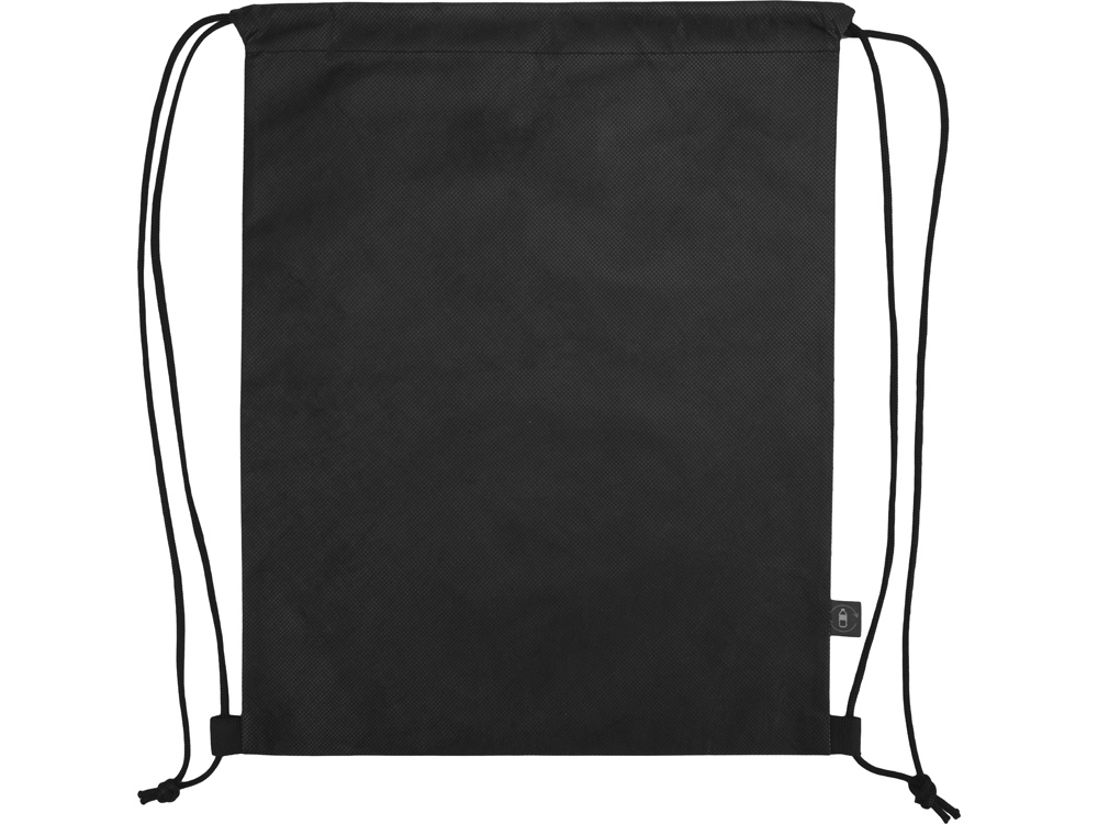 Рюкзак-мешок изготовлен из переработанного пластика. Затягивается с помощью двух боковых шнурков.