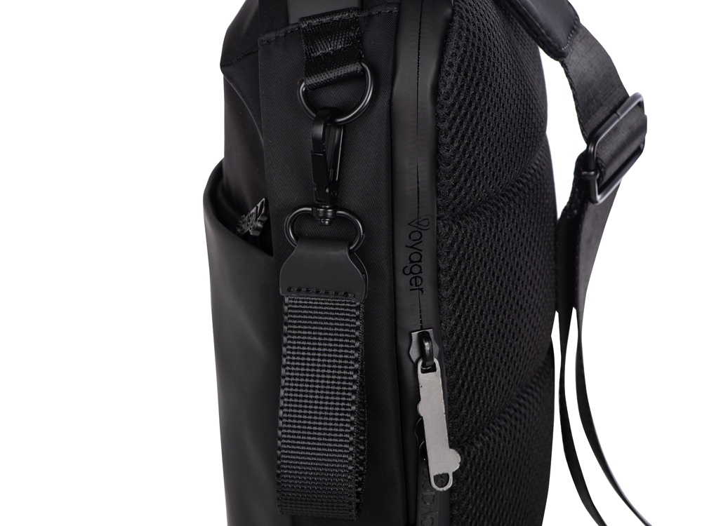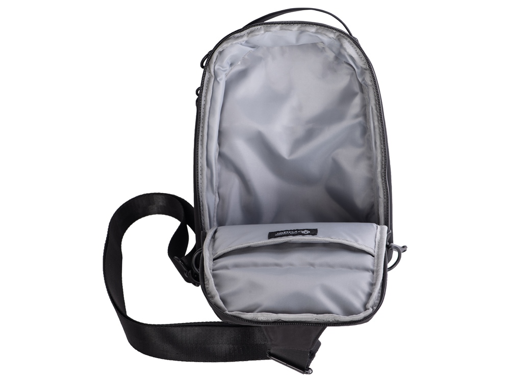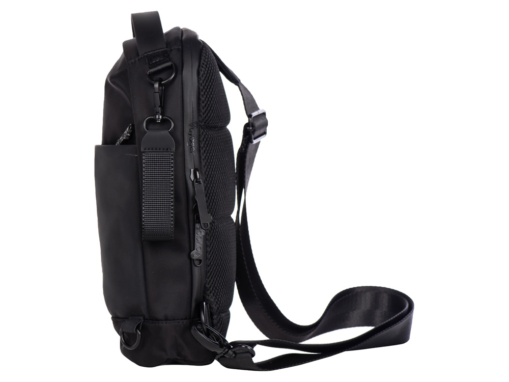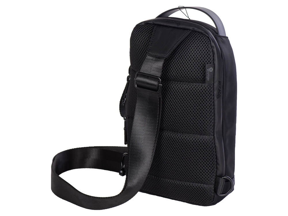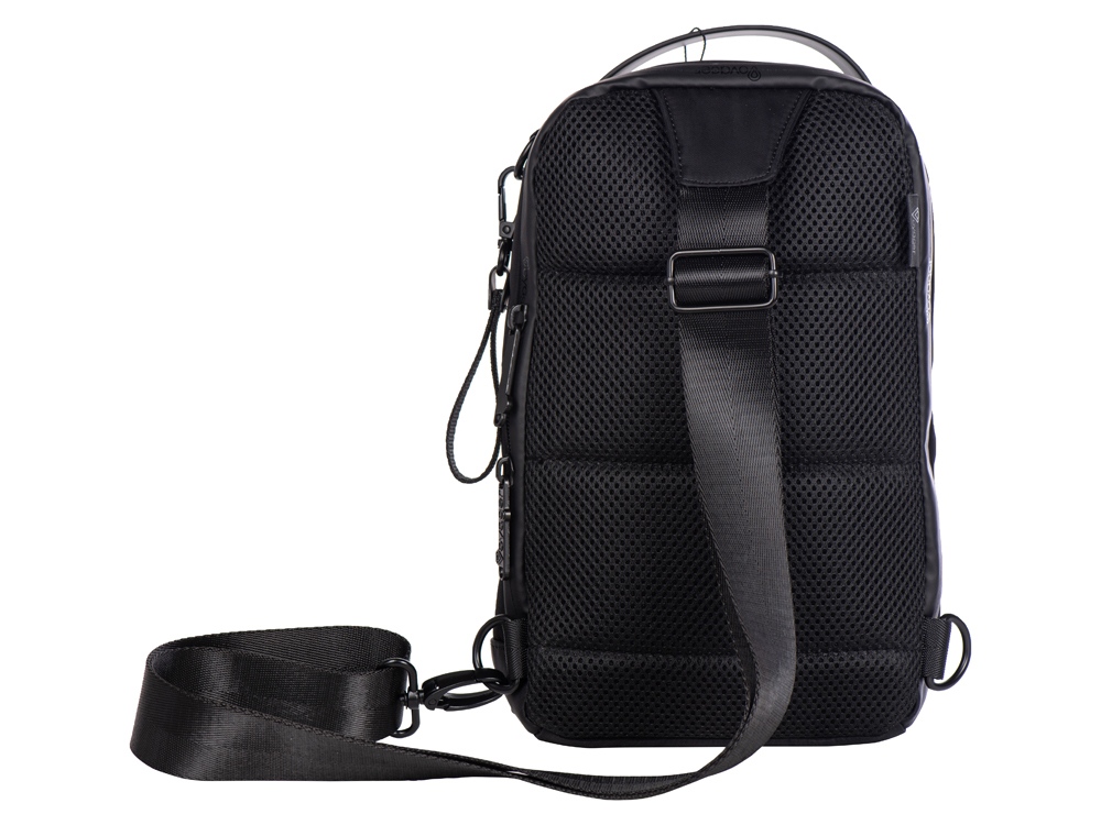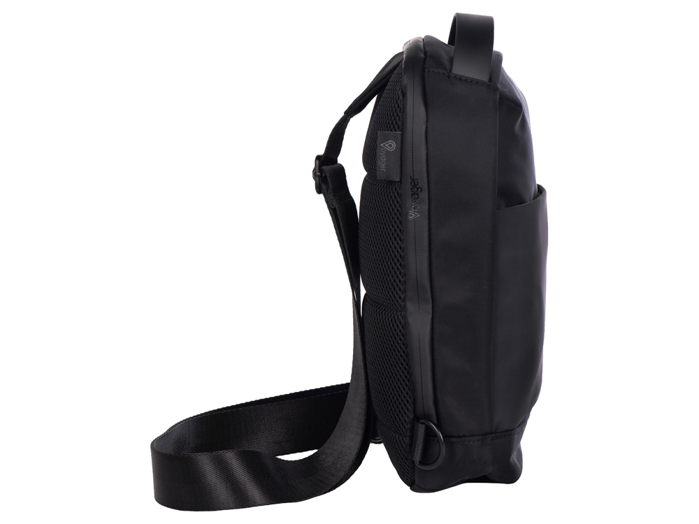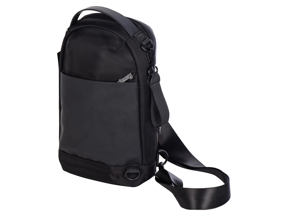 Легкий и удобный рюкзак-слинг обладает множеством достоинств: - благодаря возможности менять положение ремня, его можно носить слева и справа - непромокаемая ткань и молния - не страшен дождь - спереди карман на молнии - сетчатая спинка - карабин - ремень 130 см, регулирующийся по длине - нетканый мешок для хранения в комплекте