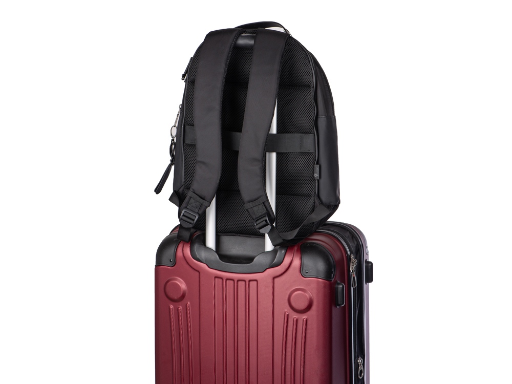Рюкзак с двумя отделениями: для ноутбука 15.6'' и удобным органайзером с тремя карманами на молнии. - непромокаемая ткань и молнии - не страшен дождь - спереди большой вместительный карман на молнии - сетчатая спинка - карабин - лямки регулируются по длине - ремень для крепления на ручку чемодана - нетканый мешок для хранения в комплекте