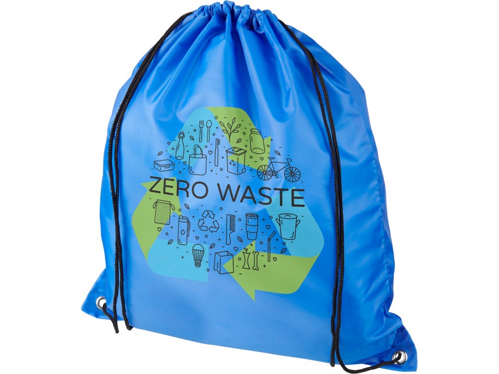 Рюкзак со шнурком Oriole из переработанного ПЭТ. Прочный рюкзак, изготовленный на 100 % из переработанного пластика, предназначенного для повторного использования, что способствует уменьшению количества пластиковых отходов. Большое основное отделение затягивается на шнурок черного цвета. Вместимость: 9 литров, прочность до 5 кг. Переработанный ПЭТ 190Т.