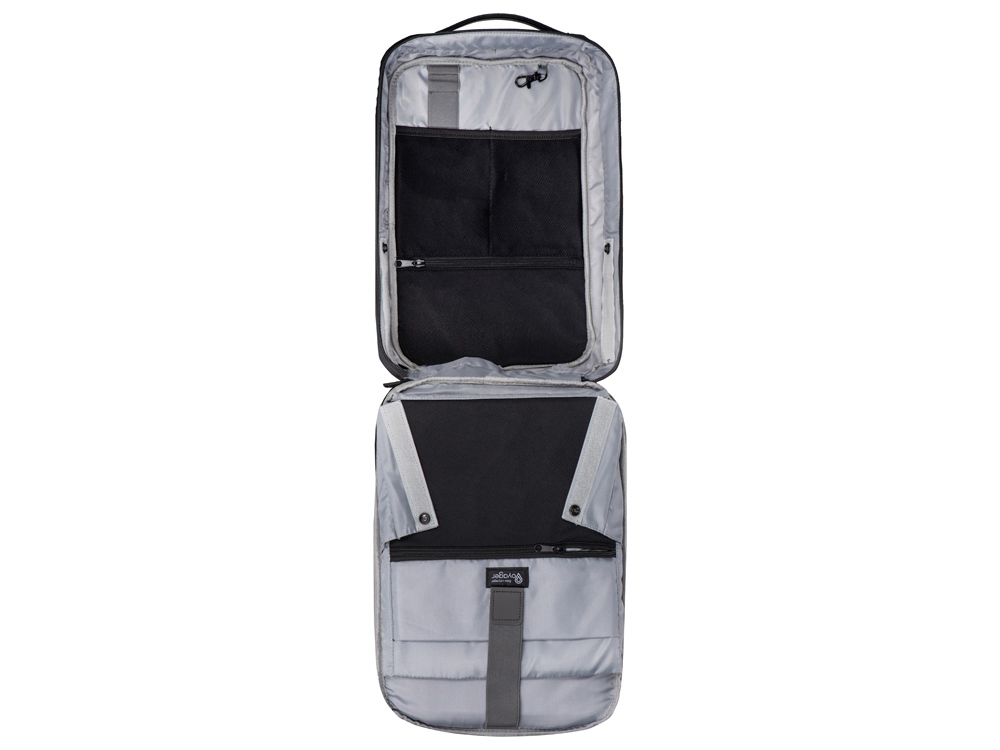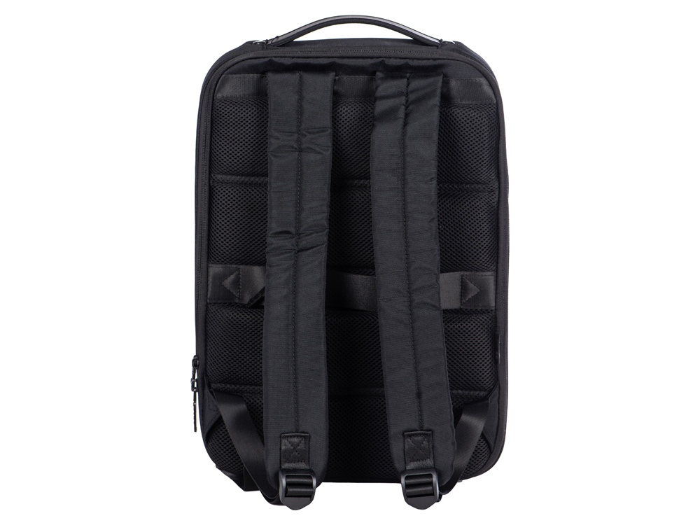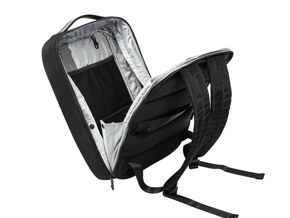 Бизнес-рюкзак с каркасом, позволяющим сохранять идеальную форму. - карманы для ноутбука и планшета на эластичных креплениях - потайной карман на молнии на спинке - спереди наружный карман для документов - органайзер с сетчатыми карманами на молниях внутри - карабин для ключей - ремень для крепления на ручку чемодана - степень раскрытия рюкзака регулируется боковыми фиксаторами на липучках и кнопках - сетчатая спинка - лямки регулируются по длине - нетканый мешок для хранения в комплекте