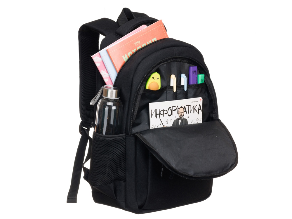 Рюкзак TORBER школьный серии CLASS X + Мешок для сменной обуви в подарок! CLASS X – серия рюкзаков для школьников, которые идут в ногу со временем, обладают индивидуальностью и стремлением к познанию нового и неизведанного. Необходимый аксессуар для любого школьника - мешок для сменной обуви. Мешок Torber подходит как для обуви, так и для физкультурной формы или сменной одежды. Состоит из одного вместительного отделения, закрывается путём стягивания шнурков. Можно носить в руках, на одном плече или на плечах за спиной. Выполнен мешок из плотного нейлона плотностью 600D с влагостойкой пропиткой (PU). Функциональные особенности: Регулируемые продуваемые плечевые ремни Карман для бутылки Карман для зонтика Карман для планшета Мягкая спинка с продуваемыми воздушными каналами Вмещает ноутбук диагональю 15,6 Количество отделений - 2 Количество карманов - 6 шт: 1 - для ноутбука в основном отделении, 1 - для ключей и небольших аксессуаров на молнии в основном отделении, 2 - на молнии на внешней стороне рюкзака, 2 - боковых для зонтика/бутылки Материал: полиэстер 900D Размер: 45 x 30 x 18 см Объем: 17 л
