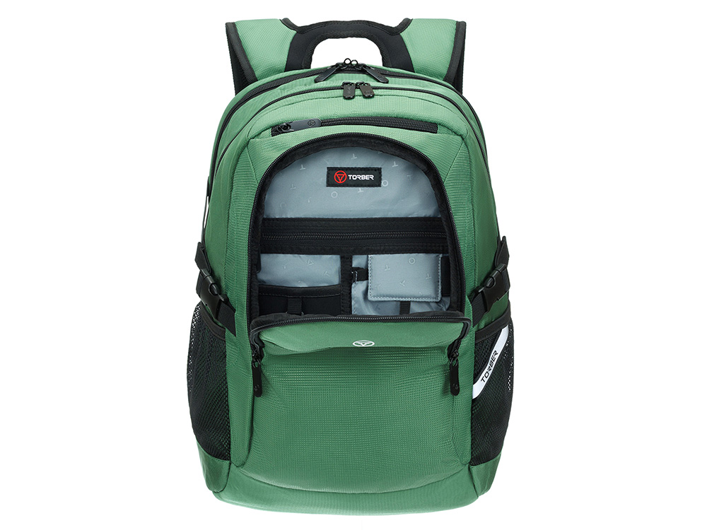 Рюкзак TORBER МЕГАПОЛИС с отделением для ноутбука 16, зеленый, полиэстер, 47 х 34 x 28 см