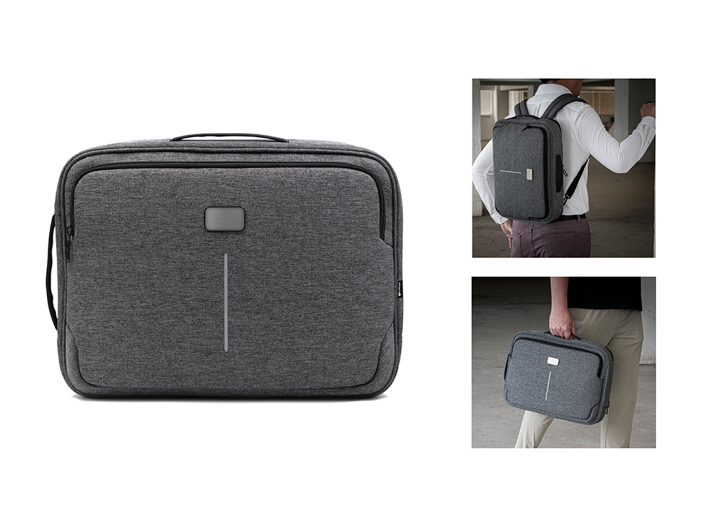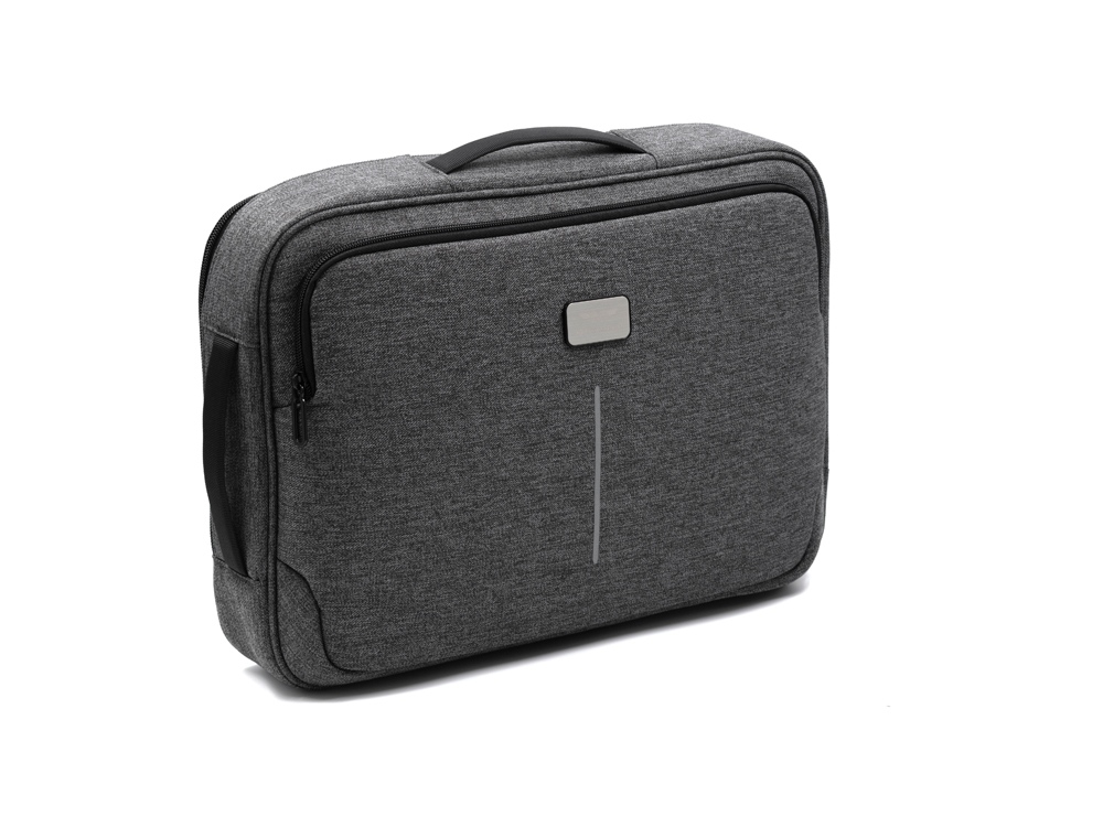 Рюкзак легко трансформируется в сумку для деловых поездок. Отстегивающиеся лямки можно спрятать в карман на молнии на спине. В комплекте 2 шильда под нанесение: металлический и из искусственной кожи. - водоотталкивающая и стойкая к пятнам ткань - спереди отделение на молнии с органайзером - регулирующиеся по длине лямки - крепление на ручку чемодана - светоотражающее нанесение спереди для большей безопасности
