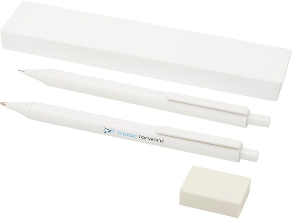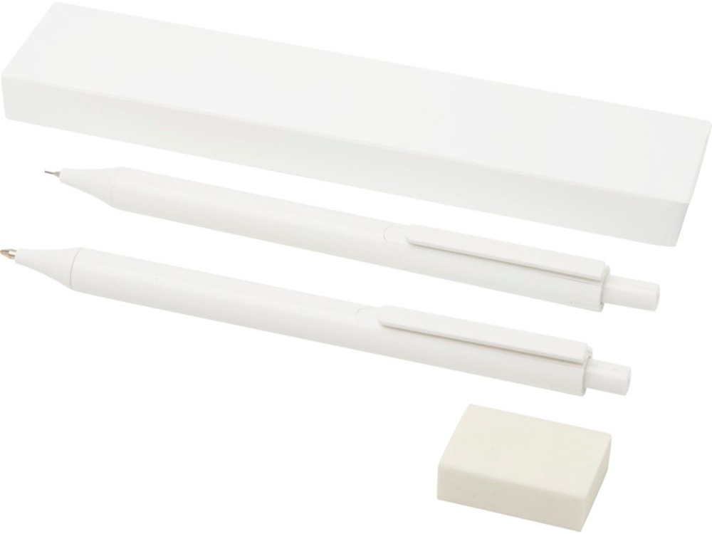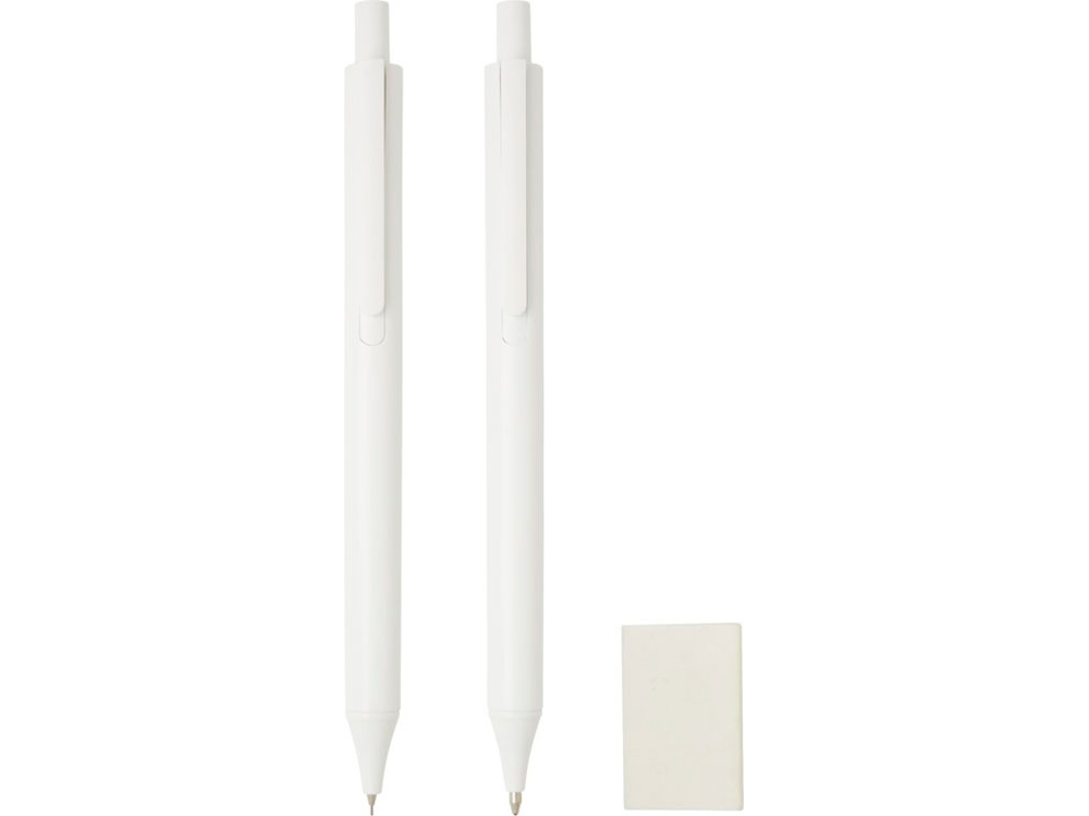| Комплектность | шариковая ручка, механический карандаш, ластик |
