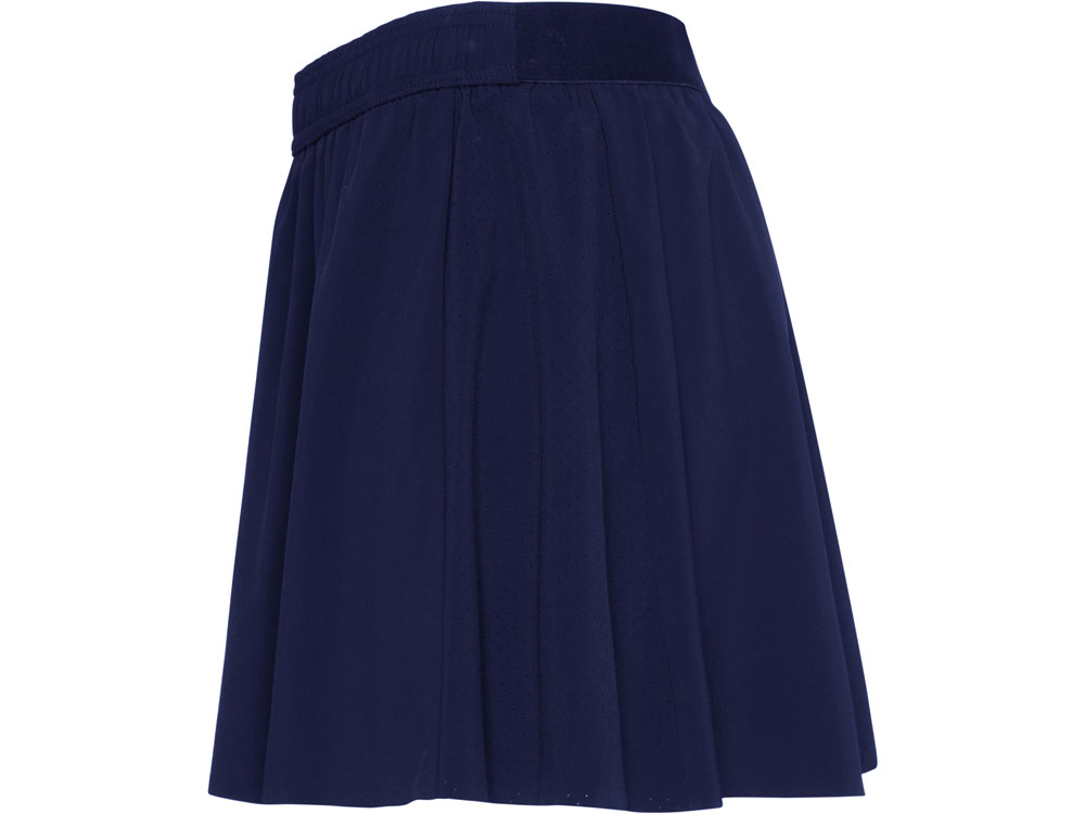 Легкая и эластичная технологичная юбка для женщин из переработанного полиэстера. · Эластичный пояс со шнурками. · Внутренние шорты с карманом на левой штанине. · Шов с термосварным краем. · В сочетании с тканью с микроперфорацией для большей воздухопроницаемости.