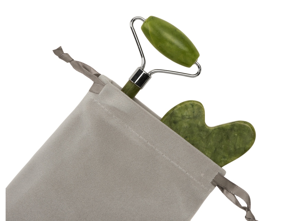 Комплектность роллер и гуаша из натурального нефрита, мешочек для хранения и переноски