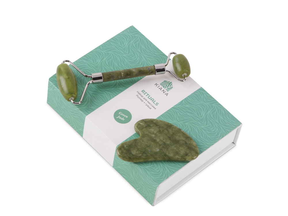 Сет роллер и гуаша Rituals из нефрита, зеленый купить оптом и в розницу с нанесением логотипа в Нижнем Новгороде