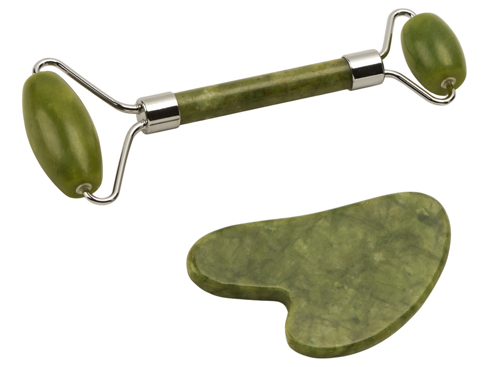 Массажеры из зеленого нефрита улучшают цвет кожи, помогают избавиться от отеков, обеспечивают лифтинг-эффект и усиливают действие косметических средств. В набор входят 2 самых популярных массажера для домашнего ухода - роллер и гуаша. Роллер идеально подходит для массажа лица, шеи и декольте. Помогает избавиться от утренней отечности, улучшает цвет лица, подтягивает рельеф кожи и усиливает действие тканевых масок и других косметических средств. Используйте большой валик для массажа щек, лба, подбородка, шеи и декольте, маленький – для зоны вокруг глаз, век и межбровной складки. Гуаша отлично подходит как для массажа лица, так и для работы по поверхности шеи, рук и плеч. При длительном использовании помогает подтянуть овал лица и улучшить его цвет. Проводите процедуру строго по массажными линиям в направлении, показанном на рисунке на шубере. Для более эффективного избавления от отеков перед применением массажеры можно охладить.