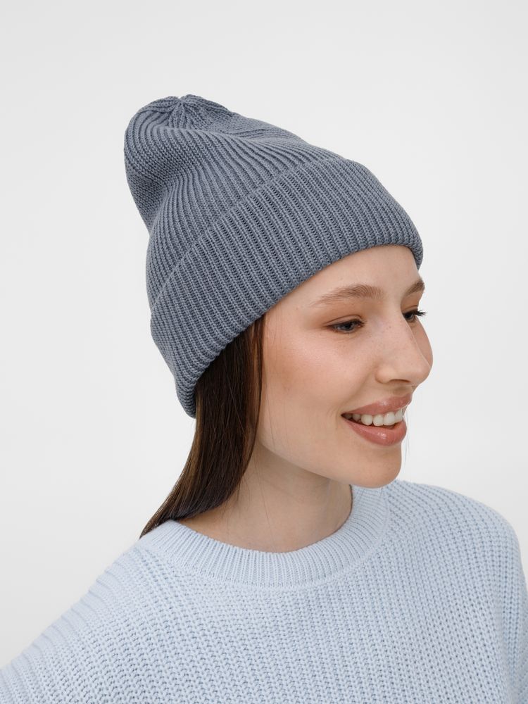 Удлиненный силуэт шапки Nobilis Mono из мягкой полушерстяной пряжи с широким отворотом создает стильный современный образ, а фактурная вязка добавляет объем и выразительность.