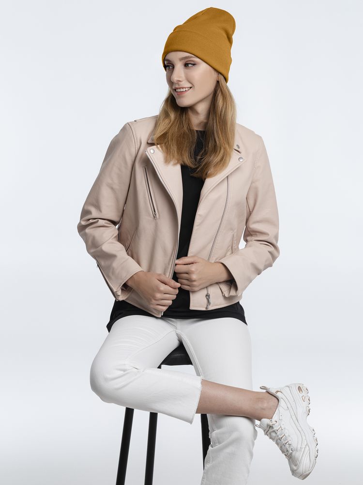 Шапка Real Talk, горчичная купить оптом и в розницу с нанесением логотипа в Нижнем Новгороде