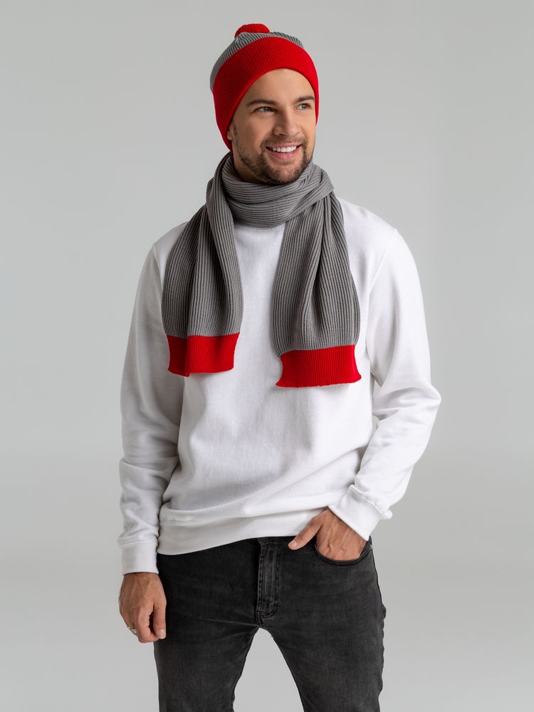 Шарф Snappy, светло-серый с красным купить оптом и в розницу с нанесением логотипа в Нижнем Новгороде