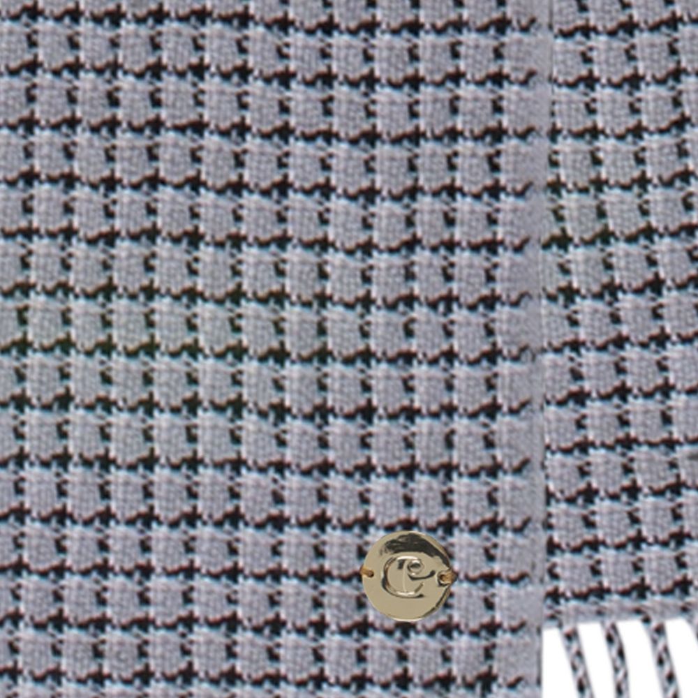 Шарф  из высококачественной шерсти с бахромой и узором «гусиная лапка» украшен золотистой эмблемой бренда Cacharel.Поставляется в подарочной упаковке.