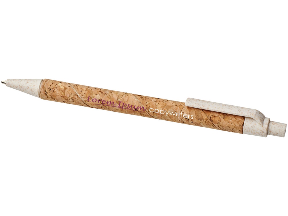 Шариковая ручка Midar из пробки и пшеничной соломы. Эта экологически чистая кнопочная шариковая ручка с корпусом из пробки и отделкой из пшеничной соломы представлена в широкой цветовой гамме. Пшеничная солома остается после сбора зерновых. Она позволяет сократить количество используемого пластика, в результате чего создается экологически чистый продукт. Цвет материала пробки может отличаться. Пробка, пластик из пшеничной соломы.