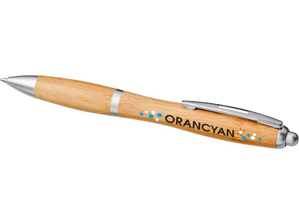 Шариковая ручка Nash из бамбука. Экологически чистая кнопочная шариковая ручка с корпусом из бамбука, хромированным зажимом и отделкой из АБС-пластика. Цвет бамбукового материала может отличаться. Бамбук, АБС-пластик.