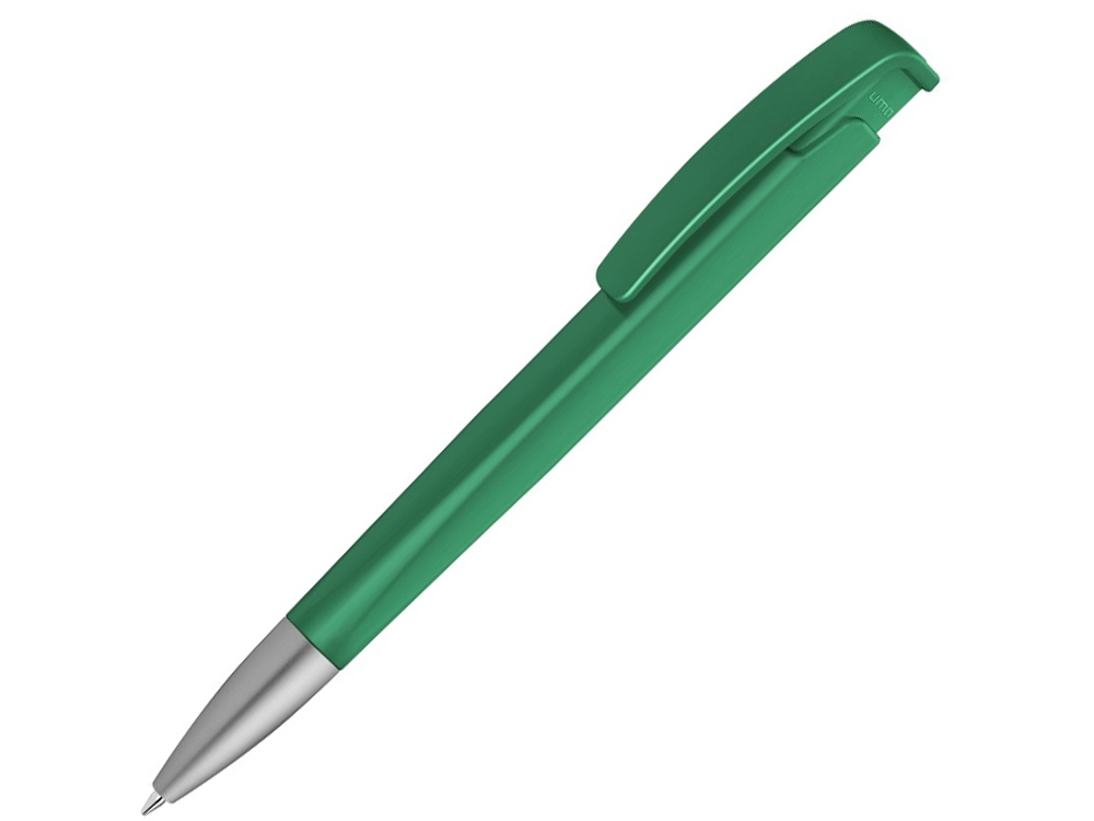 Автоматическая шариковая ручка с матовым геометричным тонированным корпусом и наконечником, широким изогнутым клипом.