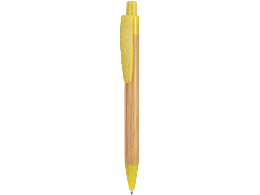 Шариковая ручка с бамбуковым корпусом. Наконечник, клипса и кнопка из пшеничного волокна / ABS. Синие чернила.