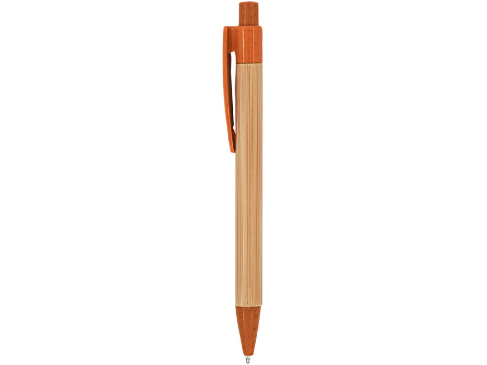 Шариковая ручка с бамбуковым корпусом. Наконечник, клипса и кнопка из пшеничного волокна / ABS. Синие чернила.