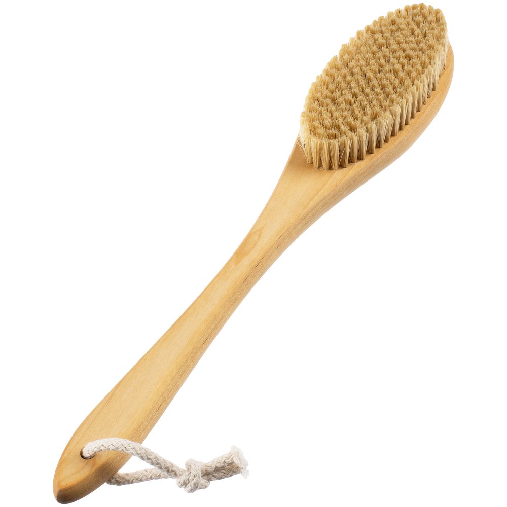 Щетка изготовлена из экологичных материалов. Натуральная щетина средней жесткости защитит кожу от мелких повреждений, подарив только самые приятные ощущения.