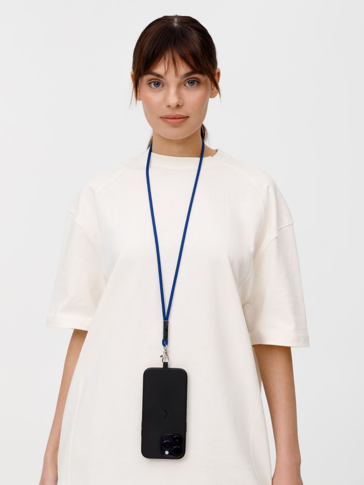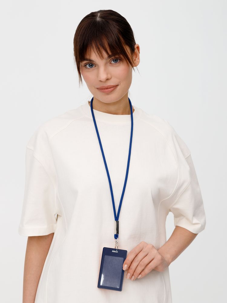 Шнурок для бейджа Tube Metal, синий купить оптом и в розницу с нанесением логотипа в Нижнем Новгороде