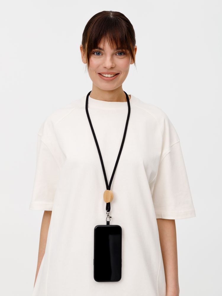 Шнурок для бейджа Tube Wood, черный купить оптом и в розницу с нанесением логотипа в Нижнем Новгороде