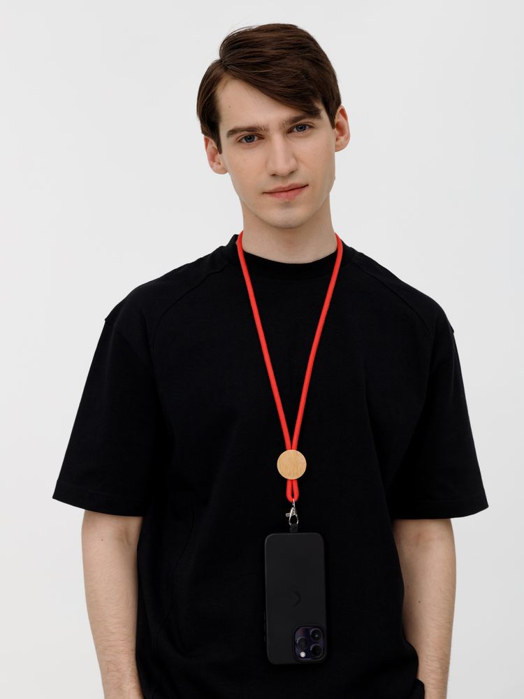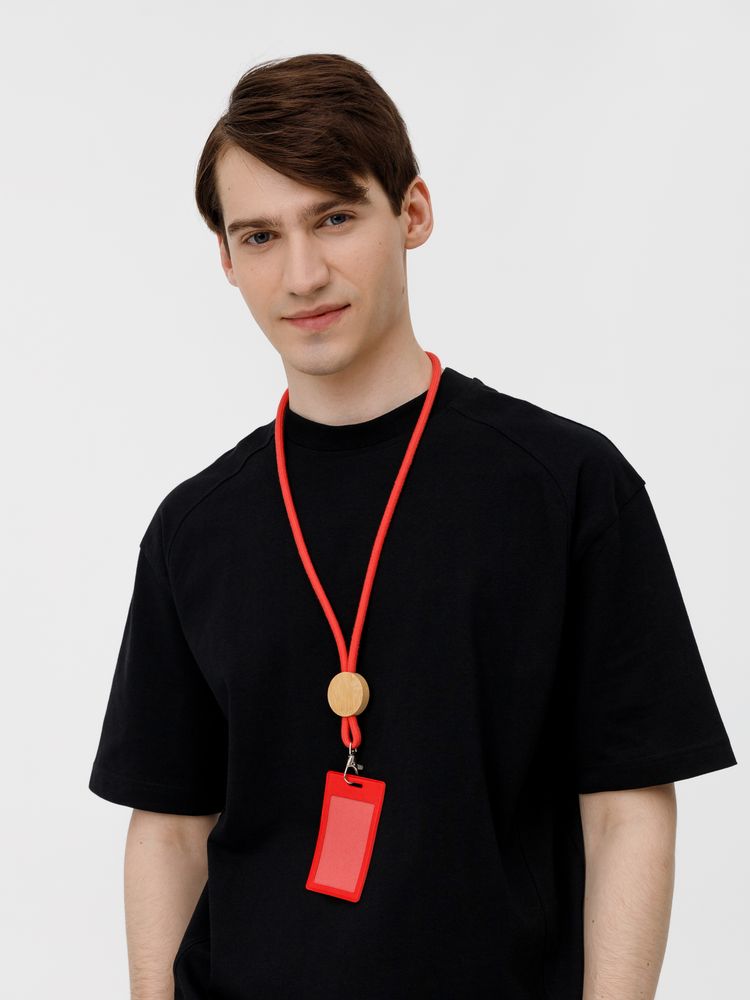Шнурок для бейджа Tube Wood, красный купить оптом и в розницу с нанесением логотипа в Нижнем Новгороде