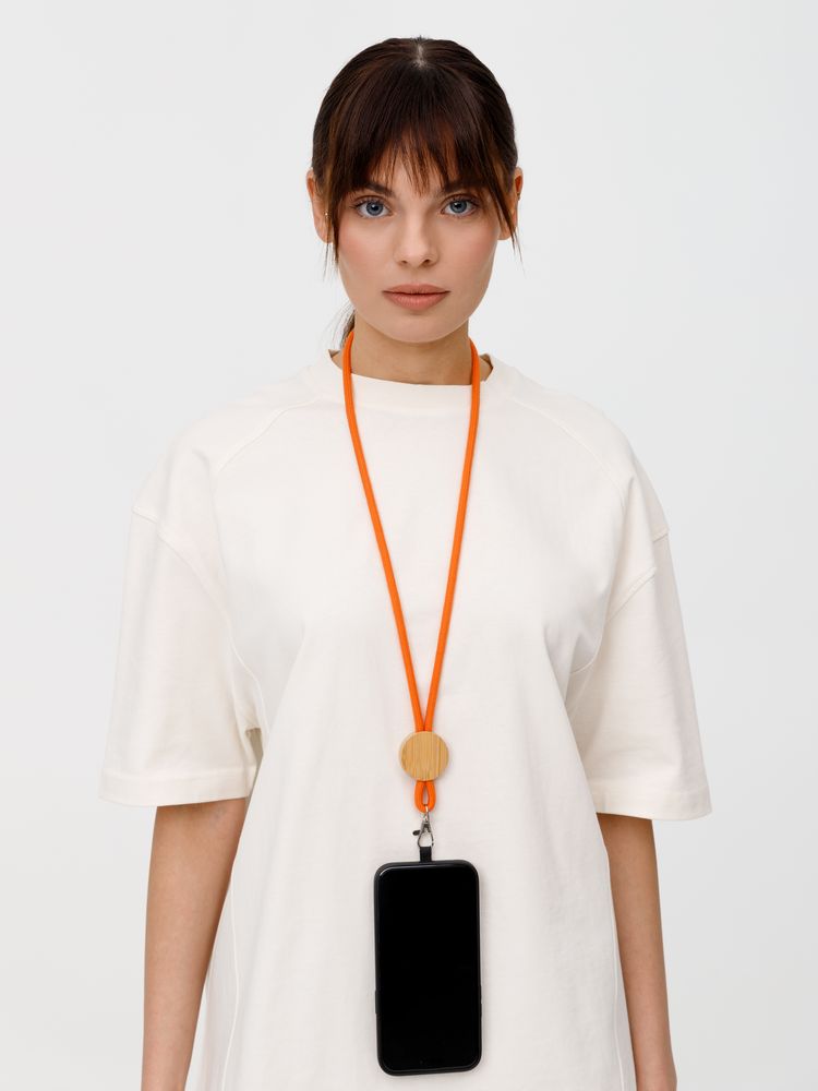 Шнурок для бейджа Tube Wood, оранжевый купить оптом и в розницу с нанесением логотипа в Нижнем Новгороде