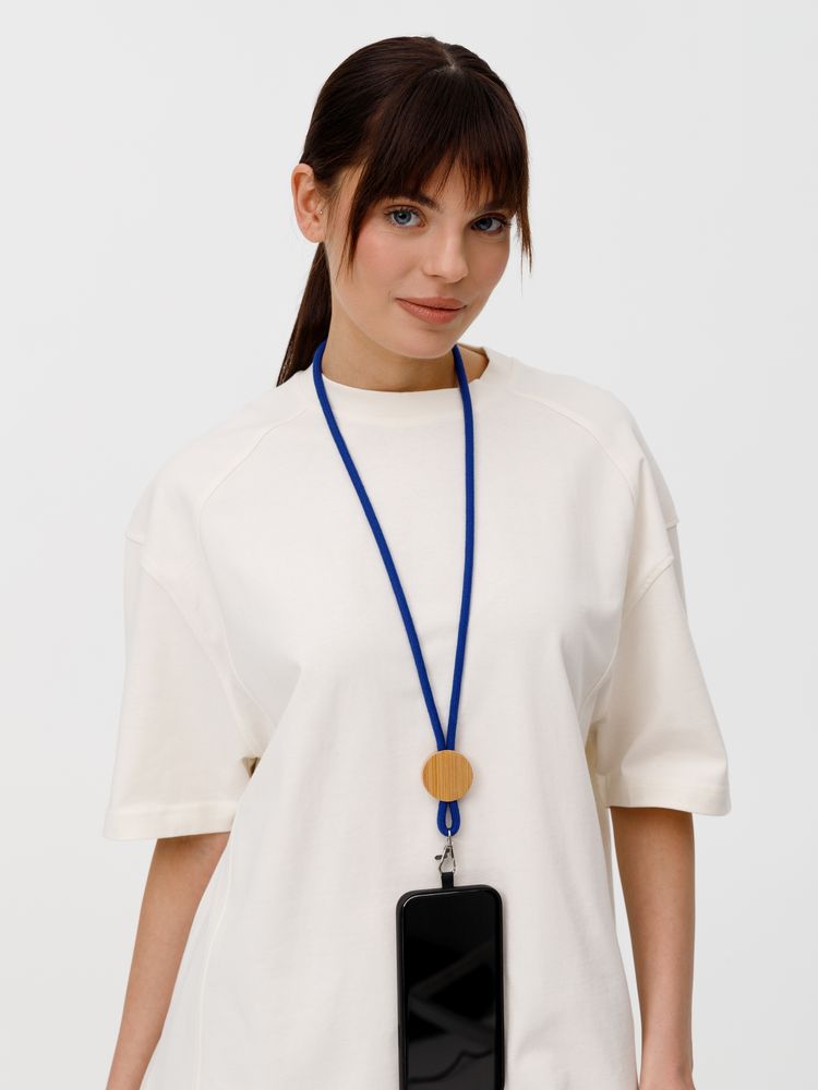 Шнурок для бейджа Tube Wood, синий купить оптом и в розницу с нанесением логотипа в Нижнем Новгороде