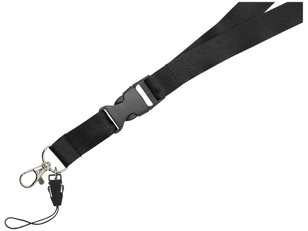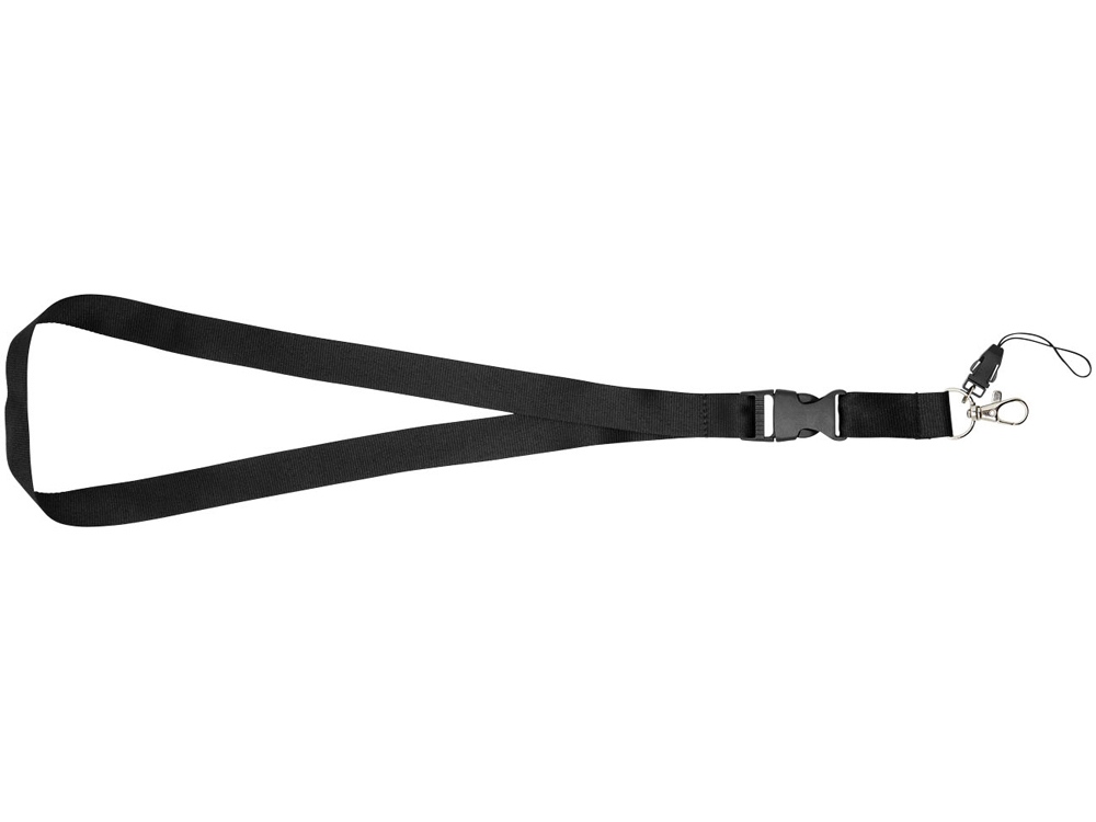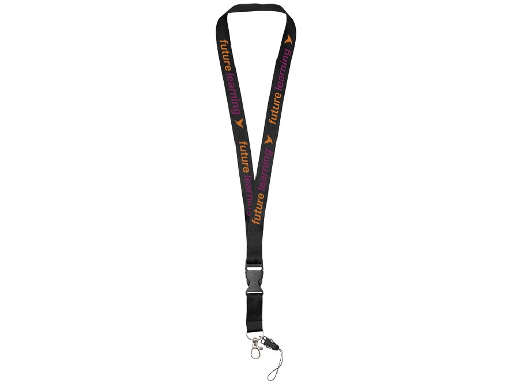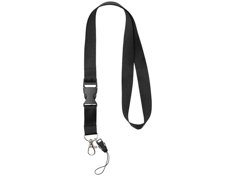 Многофункциональный шнурок с отстегивающейся пряжкой, овальным крючком с зажимом и держателем для телефона. Идеально подходит для бейджа, удостоверения личности или ключей. Предлагается широкий выбор цветов с большим участком для нанесения логотипа. Полиэстер.
