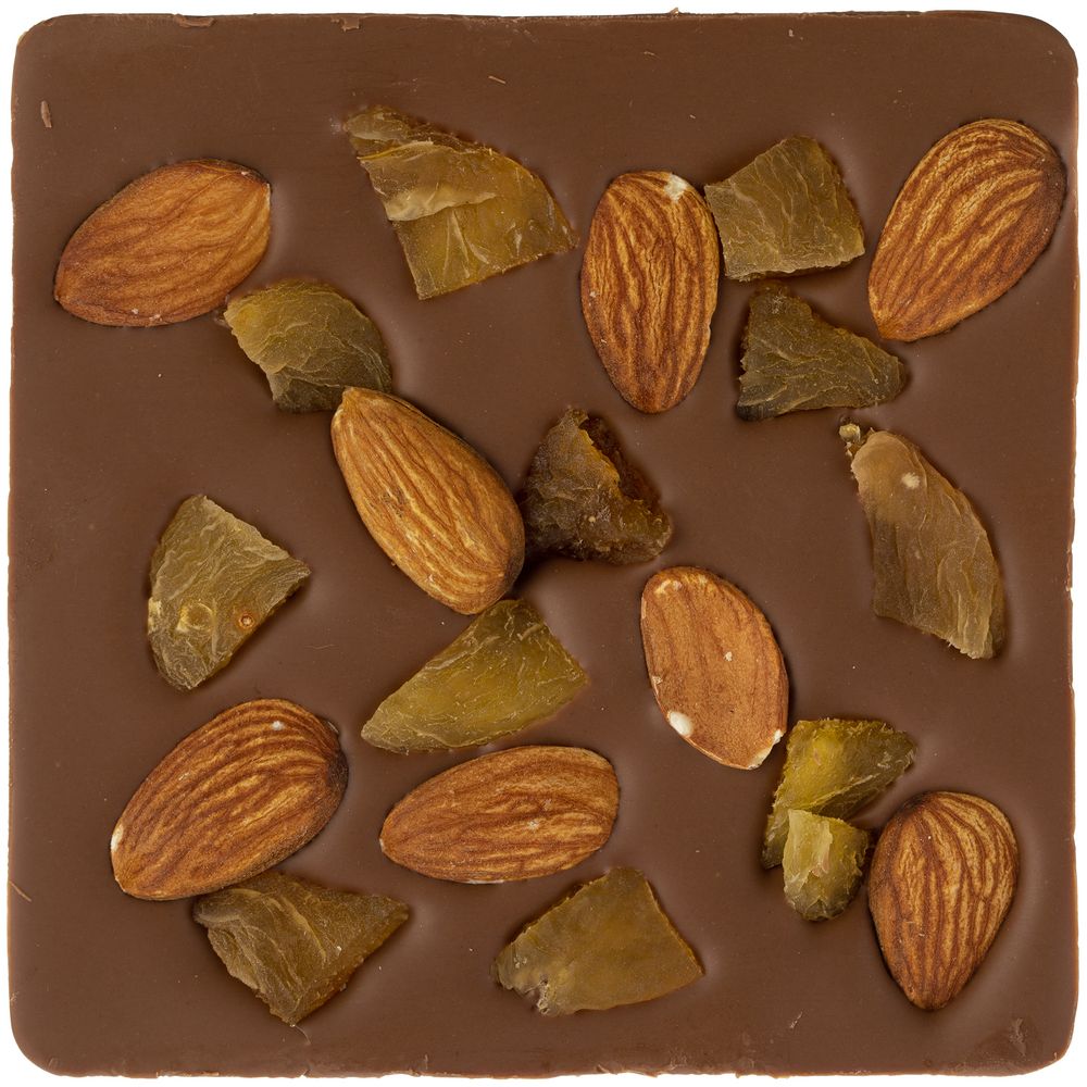 Молочный шоколад ручной работы, изготовленный по классической бельгийской технологии, с миндалем и кусочками сушеного абрикоса.Состав: какао тертое, сахар, масло какао, сухая молочная сыворотка, эмульгатор (соевый лецитин), сухое цельное молоко, ванилин, жареный миндаль, сушеный абрикос.