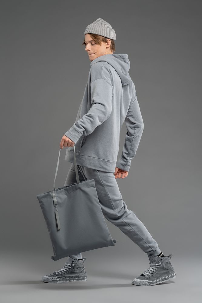 Шопер B3, серый с серыми ручками купить оптом и в розницу с нанесением логотипа в Нижнем Новгороде