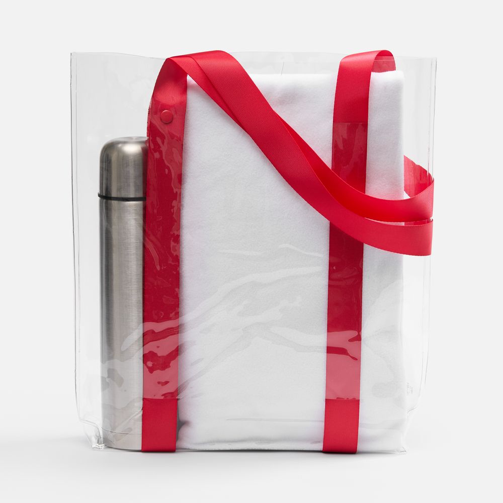 Шопер Clear Fest, ver.2, прозрачный с красными ручками купить оптом и в розницу с нанесением логотипа в Нижнем Новгороде